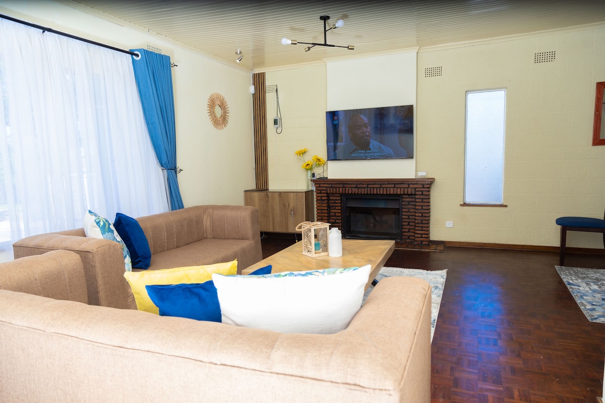 Te damos la bienvenida a nuestro amplio Airbnb de 7 dormitorios ubicado en el corazón de Gweru, Zimbabue. Desde el momento en que pongas un pie en este espacioso refugio, estarás envuelto en la comodidad, el estilo y la calidez de la hospitalidad de Zimbabue. Ubicado en un vecindario sereno, pero a poca distancia en coche del bullicioso centro de la ciudad, nuestro Airbnb ofrece la mezcla perfecta de tranquilidad y conveniencia. Te damos la bienvenida a Banville Place, el lugar ideal.