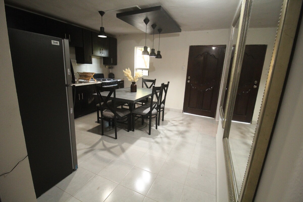 Si llegaste de visita a Matamoros y buscas sentirte como en tu hogar. Mi casa es una buena opción. Nos ubicamos a 10minutos del aeropuerto, a 15minutos del centro. Contamos con area espaciosa para estacionar hasta 6 carros con area delimitada. Contemplanos somos una buena opción.