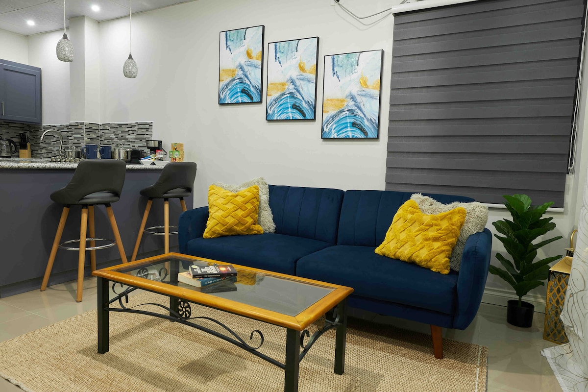 Elegante refugio de 1 dormitorio | Comodidad moderna y ubicación privilegiada Relájate en este apartamento de 1 dormitorio recién construido y totalmente equipado con acabados elegantes, wifi de alta velocidad, una cocina completa y ropa de cama lujosa, perfecto para estancias de negocios o de placer. Idealmente ubicado a pocos minutos de centros comerciales, tiendas de comestibles, gasolineras y el aeropuerto, con rápido acceso a la autopista. A solo 20 minutos de Puerto España.