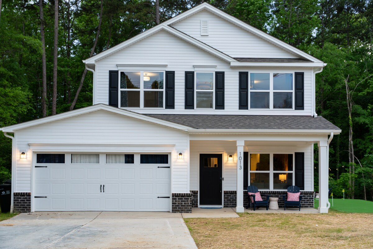 Nuestra casa de 2 pisos, apta para perros, ofrece la mezcla perfecta de comodidad, estilo y entretenimiento. Ubicados en un barrio tranquilo y familiar, estamos en el centro de todo lo que Charlotte tiene para ofrecer. Disfruta del patio trasero privado y vallado y relájate en la bañera de hidromasaje o disfruta de una sesión en la sauna al aire libre. Practica tu juego corto en el putting green privado o reúne a amigos y familiares para una noche de diversión en la sala de juegos, que incluye una mesa de billar y juegos clásicos de arcade.