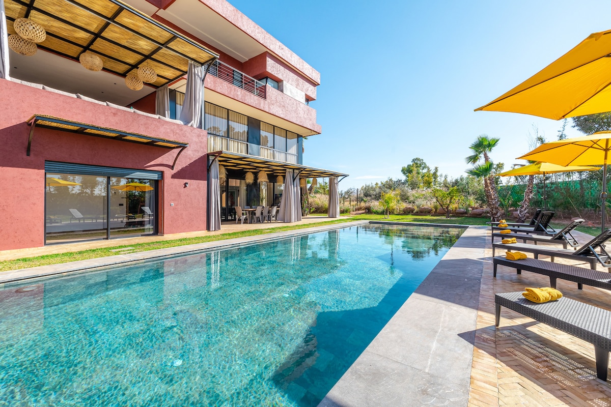 Discover our luxurious haven in Marrakech, nestled within the prestigious "Amelkis Golf Resort" by EMAAR. Six sumptuous suites, a vintage arcade, a pool, and breathtaking views await you. Immerse yourself in relaxation with a professional kitchen, Mexican garden, and elegant living spaces. Complimentary breakfast and housekeeping services are included for a "stress-free" experience. Book now for an unforgettable getaway that seamlessly blends comfort and entertainment.