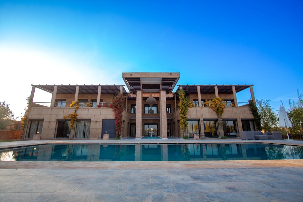 Découvrez cette villa d’exception 🌴 Située à 20 minutes de Marrakech, elle propose 6 suites spacieuses avec salles de bain privatives, un grand séjour lumineux avec salle à manger, une belle piscine entourée d’un vaste jardin et une vue dégagée sur l’Atlas. Accessible par 1km de piste accessible, elle offre calme et confort, c’est l’endroit idéal pour se détendre. Le tarif inclut housekeeping et cuisinière dédiée.