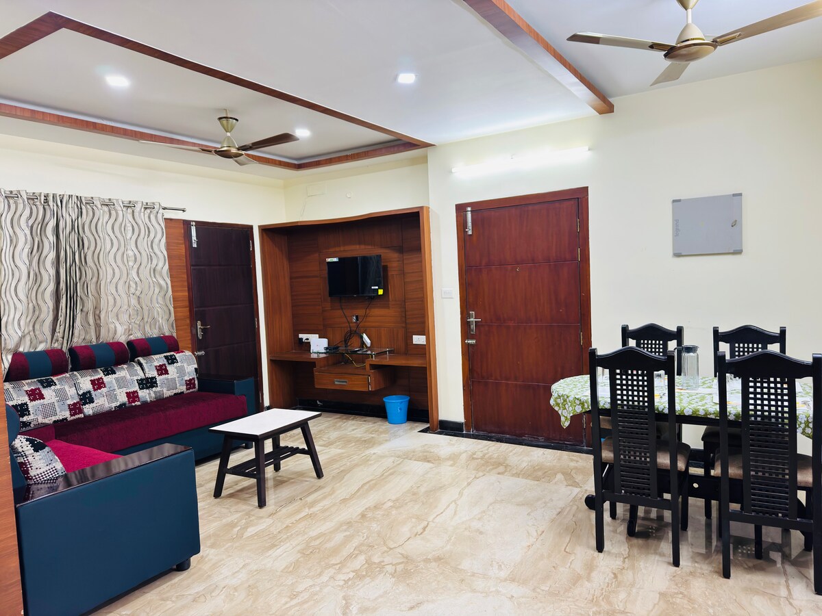 Welcome to our thoughtfully designed 2BHK, curated exclusively for families. Whether you’re on a weekend getaway or a long-term stay, our home offers the space and amenities you need to relax. Why Families Love Staying With Us: 1.Two spacious bedrooms accommodating 4 adults with premium linens and plenty of storage 2. Safe and secure family friendly neighborhood 3.A cozy living room with sofa cum bed ideal for relaxing, reading, or movie night 4. Premium comfort at affordable price.