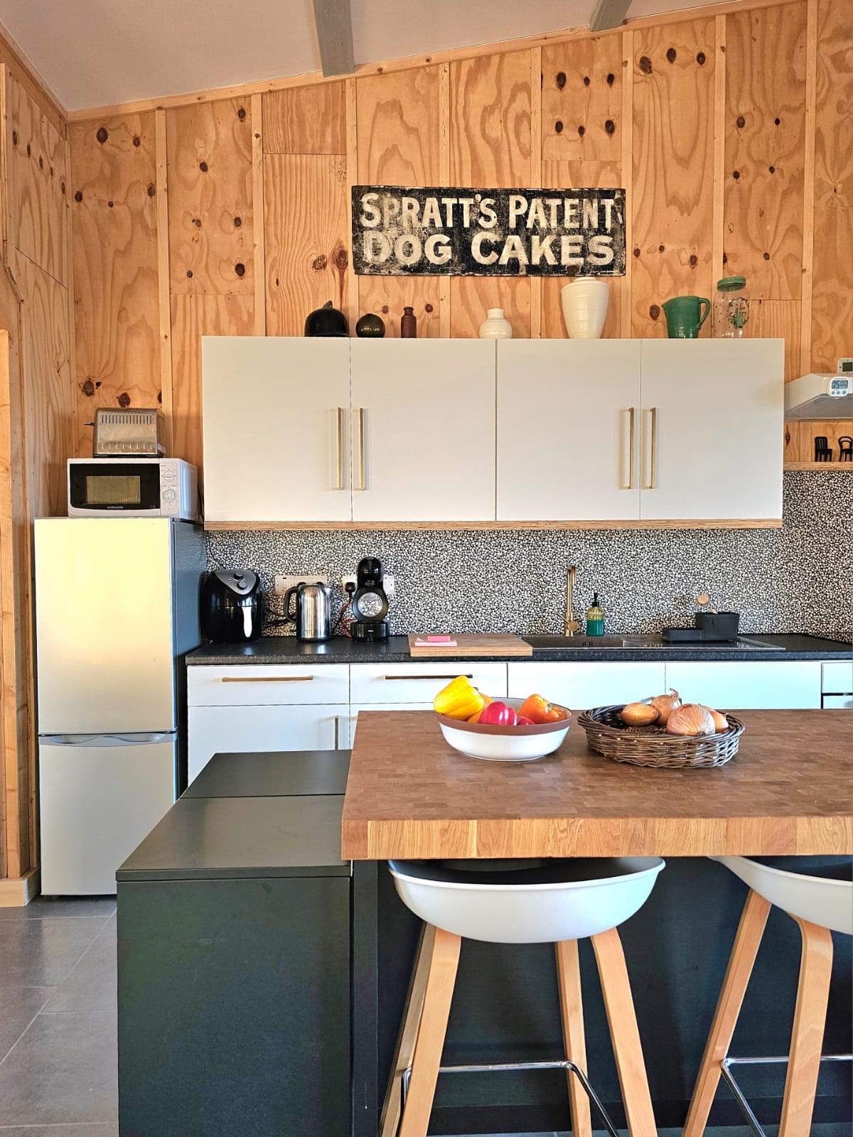 Esta es una cabaña de madera con una pequeña estufa de leña. Hay vistas despejadas del mar a través de las puertas dobles de cristal. Hay una acogedora sala de estar con sofá cama y TV de pantalla plana. El dormitorio tiene una cama doble. El baño tiene bañera y ducha. Es un espacio pequeño y muy acogedor. Hay dos hermosas playas a poca distancia a pie.