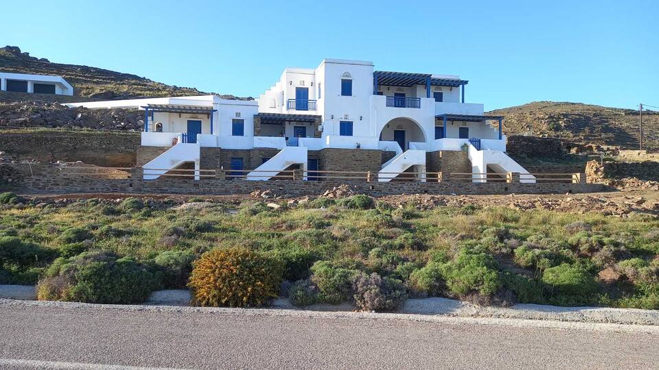 - Alojamientos vacacionales frente a la playa Megas Gialos