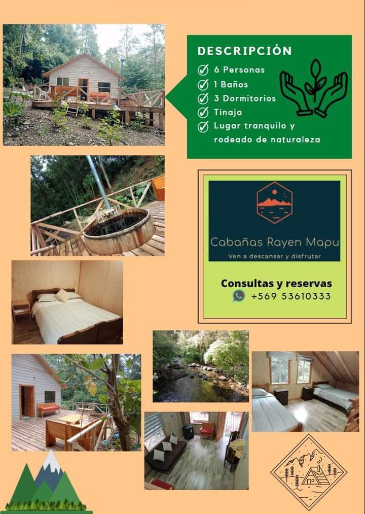 cabañas campestre un lugar único entre la naturaleza nativa de la precordillera ideal para Desconectarte de tus preocupaciones en este espacio tan amplio y sereno. jacuzzi con hidromasajes al exterior, precio adicional, calefacción a combustión lenta incluye leña. baño completo( no incluye toallas) cocina incluye te,café, yerba, azúcar, sal, aceite, papel confort. tv con Disney play, habitaciones con sábanas completas. estacionamiento al aire libre. acceso a cabaña con portón eléctrico