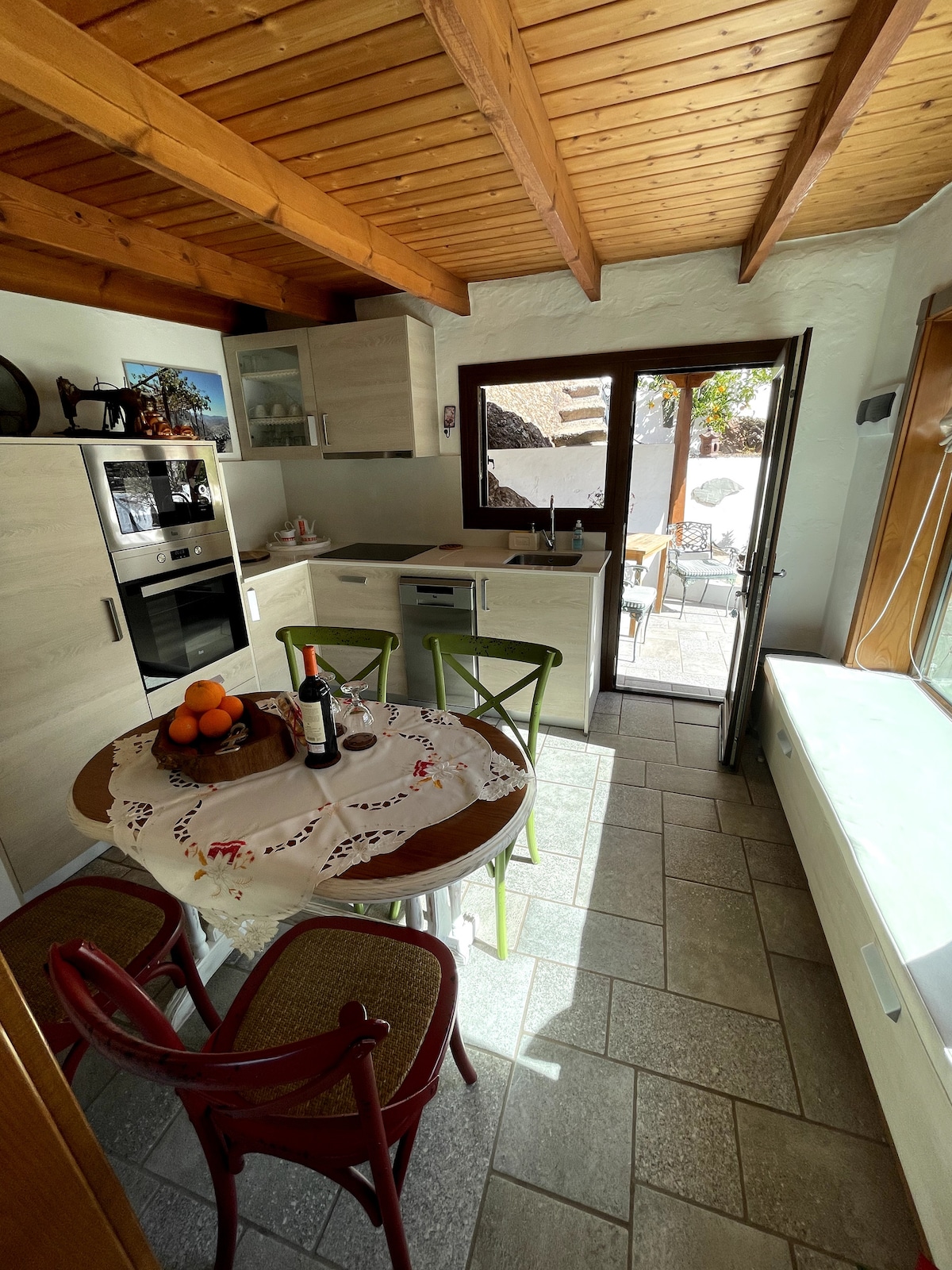 La Señorita está situada en un espacio privilegiado dentro de la Caldera de Tejeda, entre el Roque Nublo y el Roque Bentayga. Casa amplia, con tres dormitorios, dos baños y cocina- salón. La construcción data del sXIX y ha sido rehabilitada recientemente. Se puede alquilar entera (6 personas) o parcial (4 personas). La decoración y los ambientes están muy cuidados. Tiene varias terrazas y jardín. La piscina es compartida con nuestra otra casa, Casa Catina (máx 4 pax)
