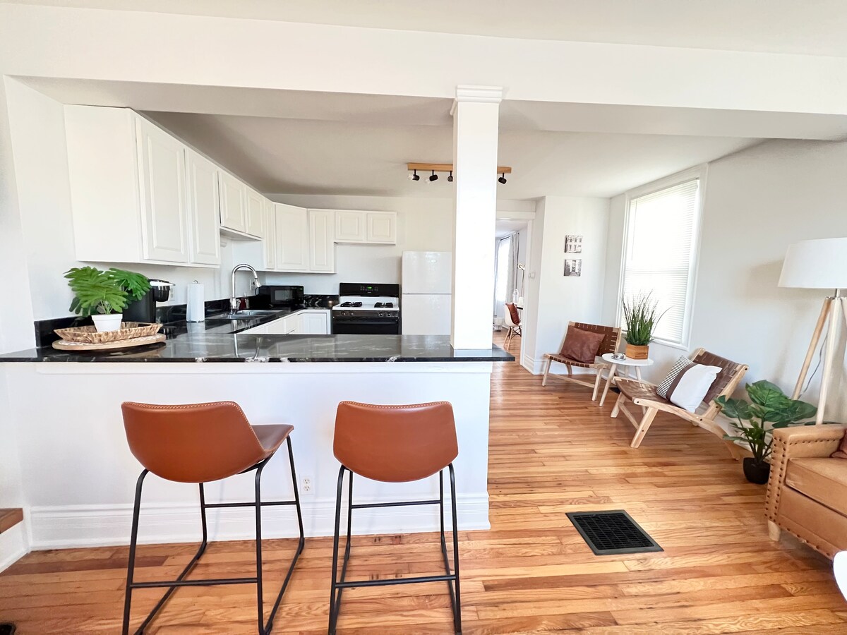 Relájate y desconecta en este alojamiento tranquilo y elegante. Perfecto para una escapada romántica o un retiro de trabajo, este apartamento recientemente renovado encarna una sensación boho fresca con alma vintage. Disfruta de la hermosa vista desde el gran ventanal, cocina en la adorable y funcional cocina americana o relájate en la cama junto a la chimenea de gas. Situado en el distrito histórico de Auburn y a 1 minuto en coche de Wegmans. Desde aquí se puede acceder fácilmente a pie a las tiendas, restaurantes y lugares de interés del centro de la ciudad.