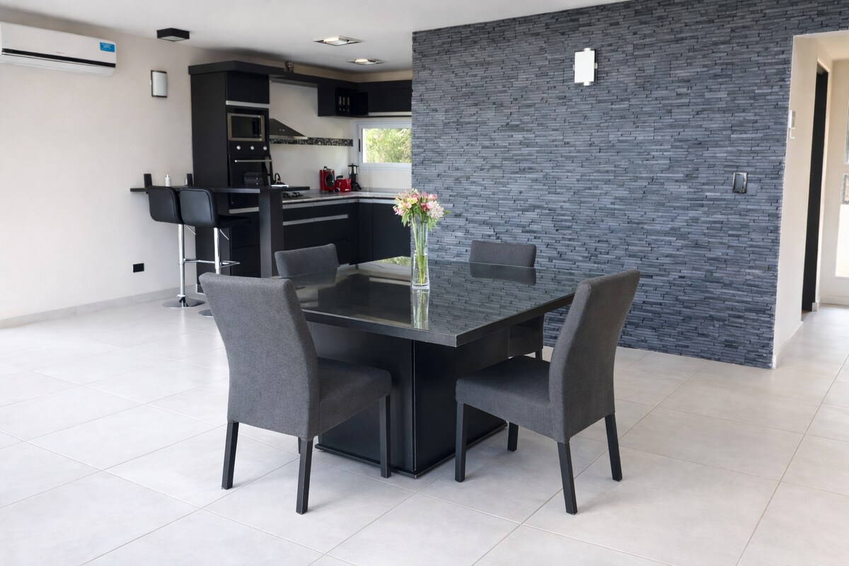 Divertite con toda la familia en este alojamiento con estilo. Tiene espacio exterior con excelentes vistas a las sierras...atardeceres espectaculares... Casita del árbol para niños....!! Piscina y quincho excelente para el verano! Servicio de traslados desde aeropuerto y paseos (opcional) Servicio de desayuno , almuerzo y cena premium....desayunos americanos...costillares en horno de barro!!!! (opcional)