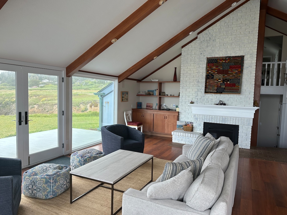 Esta es una hermosa y tranquila casa de 2 dormitorios que será un maravilloso destino de vacaciones para ti, tu familia e incluso tus mascotas. Relájate junto a la chimenea, sumérgete en el jacuzzi y observa el océano. Estás a pocos pasos de la mejor playa y carril bici pavimentado de Fort Bragg. Si disfrutas de privacidad y acceso rápido a la playa, ¡Quail Crossing te espera! Todo lo que necesitas te espera, incluyendo wifi, 3 televisores por cable, ciervos en el patio trasero, una cocina totalmente equipada y una bañera de hidromasaje para terminar todos los días. ¡Bienvenido!