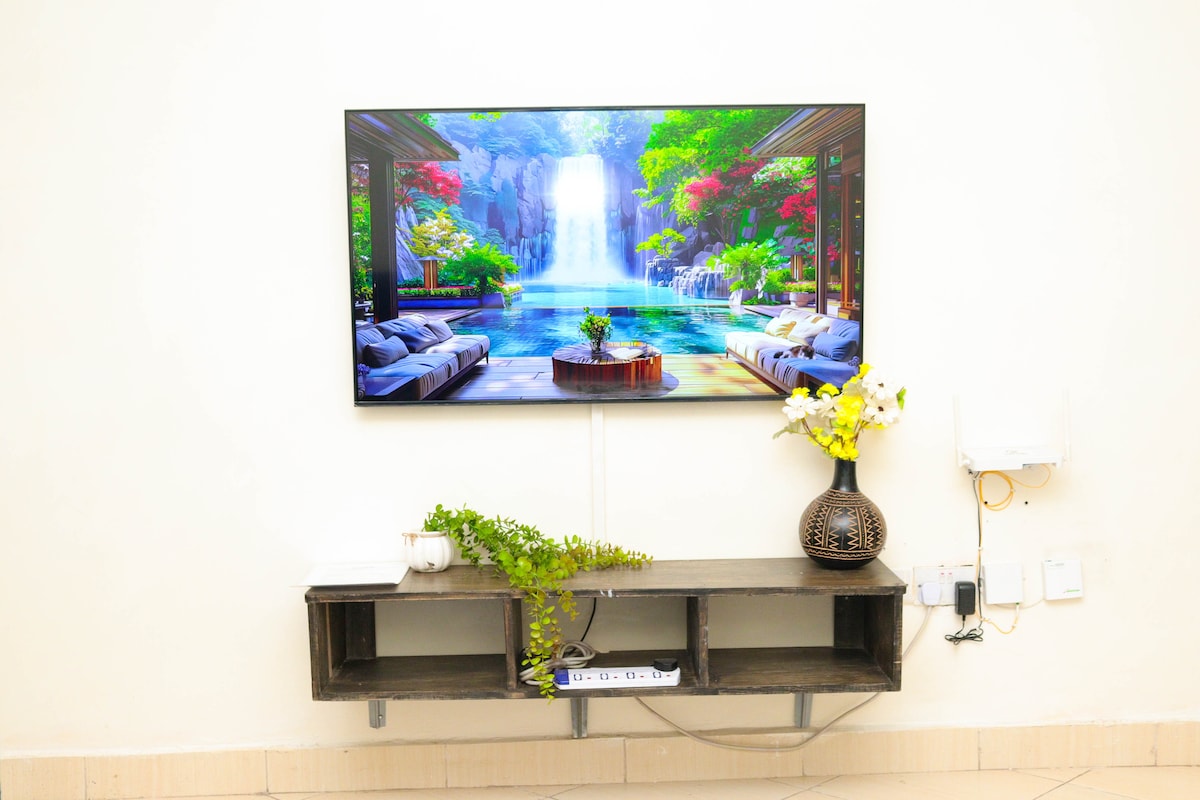 Disfruta de una experiencia elegante en este lugar céntrico. Un apartamento sereno y limpio de 1 dormitorio en Kabachia/Section 58 Nakuru. A 2 minutos en auto de 7D y Space Next Door. Diseño elegante y minimalista con un columpio de hamaca. Cerca de hoteles, kiabanda, carretera asfaltada y medios de transporte.