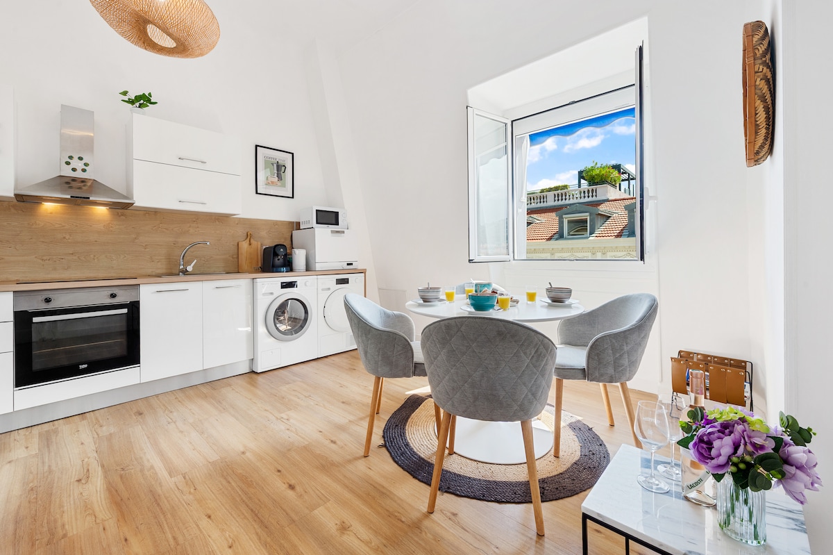 ¡Apartamento totalmente renovado en el corazón de la ciudad! Sin embargo, muy tranquilo. 1 dormitorio + 1 sofá cama en la sala de estar. Los baños son individuales. Aparcamiento gratuito y seguro. Todas las comodidades: lavavajillas, lavadora, secador de pelo, plancha (y tabla), cafetera tradicional + Nespresso, tostadora, hervidor de agua, etc. Wifi y aire acondicionado. Balcón para comer al aire libre (2 personas) y una tumbona para poner delante de la ventana: ¡felicidad! Vistas al centro de la ciudad y a las montañas circundantes. Mucha luz natural.