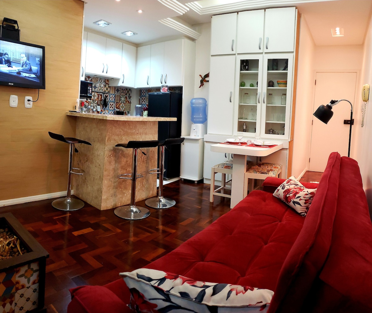📍Centro de Florianópolis, con fácil acceso a las playas (20/30 min) y a la zona continental. Cerca del mercado público, la estación de autobuses, el aeropuerto, la costa norte, el puente Hercílio Luz y los eventos Centro Sul. Cuenta con un espacio de estacionamiento🚘 Vista al mar desde la sala y el dormitorio, que están comunicados por el balcón. Región con mercados, restaurantes, pubs y el comercio central de la ciudad. Ducha de gas, sofá cama en la sala de estar con smart tv e internet de 250 mega. ¡Ideal para disfrutar de la Isla de la Magia con comodidad y seguridad!