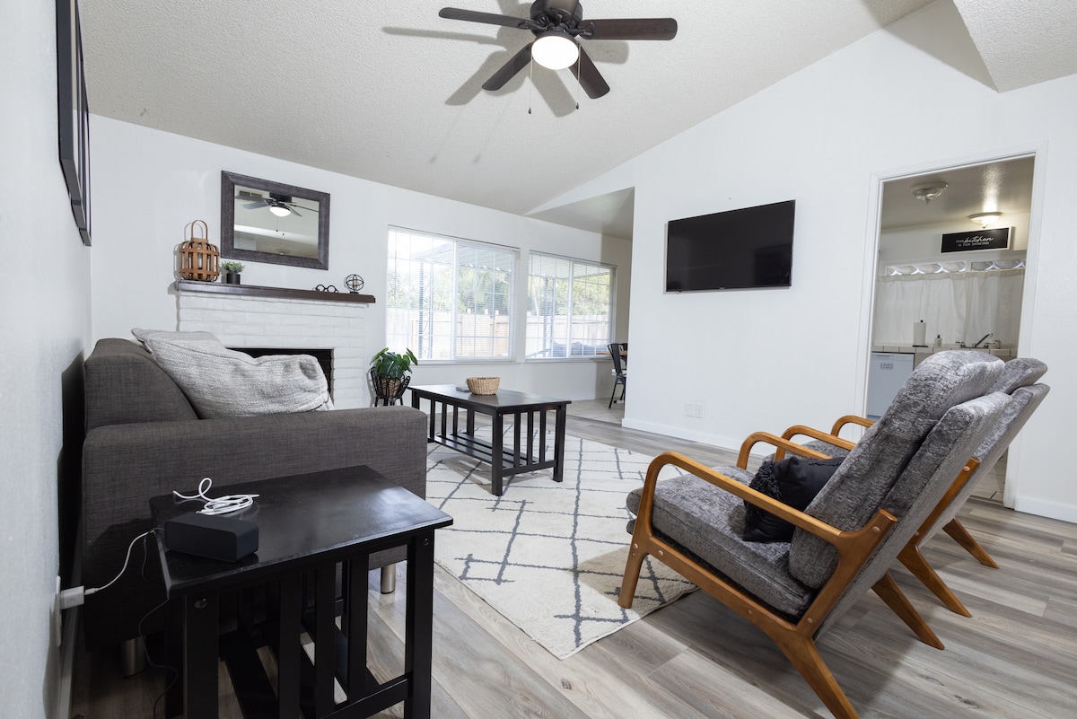 Bienvenido a nuestra encantadora casa. Esta casa de 3 dormitorios, 1 y 4 baños cuenta con una acogedora chimenea para las noches frías, una cocina totalmente equipada y un relajante patio al aire libre para disfrutar del sol de California. El estacionamiento es fácil con una entrada para 1 auto y un amplio estacionamiento en la calle. Admite mascotas para mascotas pequeñas, ¡así que trae a tu acompañante peludo!Ubicada en un vecindario tranquilo, nuestra casa está convenientemente cerca de atracciones locales, restaurantes y tiendas. ¡Disfruta de la comodidad y la comodidad durante tu estancia en Merced!