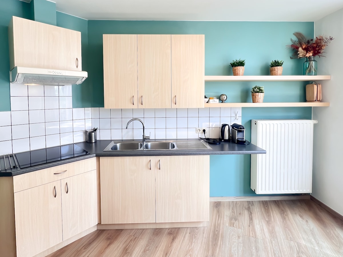 Moderno apartamento de nueva construcción dúplex justo enfrente de la estación de Aalter. Cocina totalmente equipada con todas las necesidades y sala de estar en el segundo piso (acceso al departamento). Amplio dormitorio con cama matrimonial y baño con ducha en el primer piso, accesible a través de escaleras en el salón. Se proporcionan toallas y secador de pelo. Posibilidad de estacionamiento gratuito en las inmediaciones del departamento. Desde la estación de Aalter, el traslado en tren a Gante y Brujas está a solo 15 minutos. También hay una línea de tren directa al aeropuerto AirPort de Bruselas en tren.