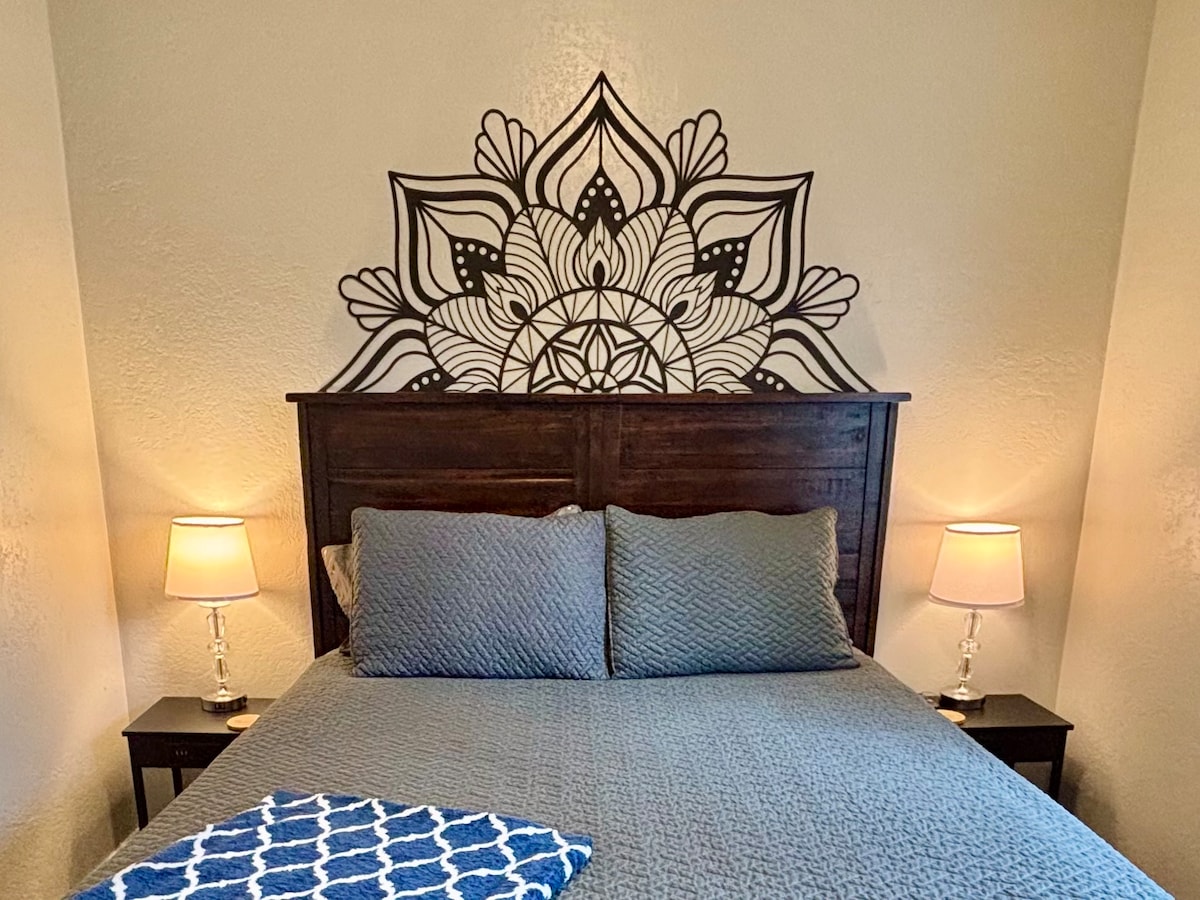 Disfruta de una experiencia con estilo en este alojamiento de 2 dormitorios y 2 baños con estudio/oficina. Perfecto para parejas o viajeros de negocios. Disfruta de una decoración elegante, un patio trasero privado y una ubicación privilegiada cerca del aeropuerto, tiendas, restaurantes y entretenimiento. Las características incluyen wifi rápido, una cocina totalmente equipada, fácil acceso a la autopista al aeropuerto de Boise y un acogedor espacio de trabajo. ¡Relájate, trabaja o explora Boise desde este alojamiento moderno y cómodo con una ubicación céntrica! ¡Reserva tu estancia hoy mismo para disfrutar de comodidad y conveniencia!