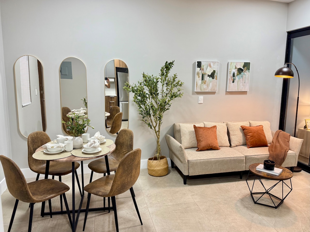 Elegante loft con paredes de concreto, vigas de acero y acabados de madera y un ambiente botánico pintando un estilo fresco e industrial. En la recámara disfruta de una vista enorme de la calle más histórica de Tijuana. Sube a la azotea para disfrutar de un concierto y vistas de las calles junto a una fogata. Seguridad 24/7 y acceso solo con tarjeta. Experimenta la ubicación más céntrica de Tijuana donde clínicas, supermercados, bares, restaurantes y cafés a menos de 5 minutos a pie.
