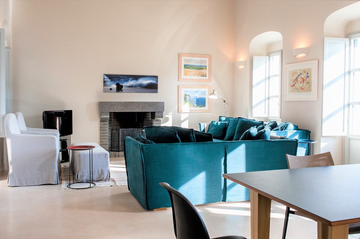 The unit “Air” (Wind) is a stone building with thick walls and the low-height doors that served as the main residence of the family. The original features of the residence have been preserved with the built in bed and the traditional fireplace, while a modern kitchen and a bathroom have been added. The total size of the unit is 41m2. The unit has a yard with spectacular water views of Korthi Bay. It has an internal area of 41 m2.
