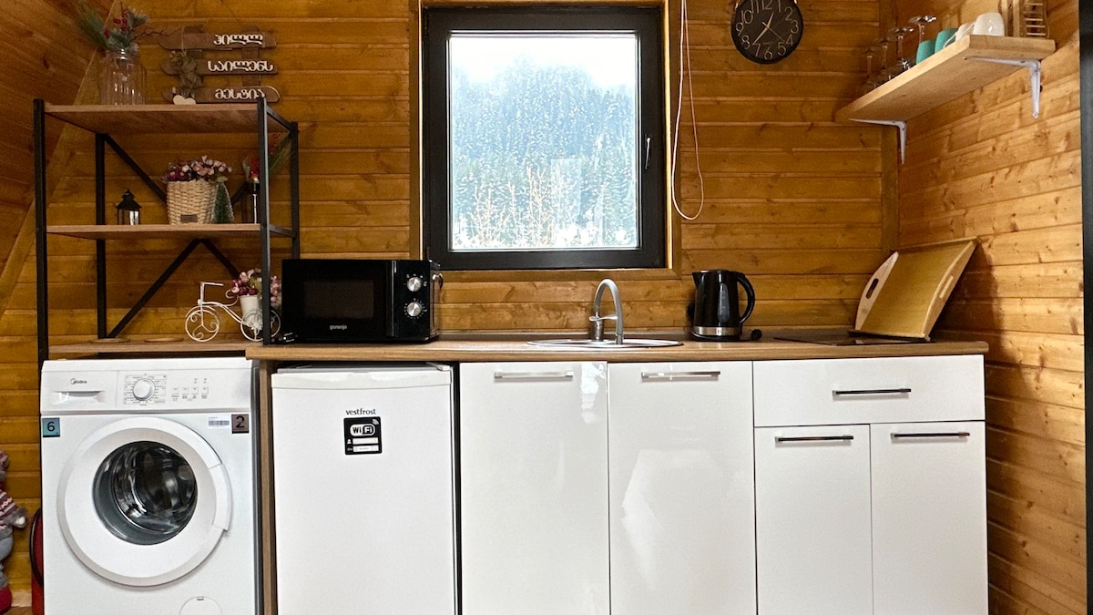 diviértete con toda la familia en este lugar con un estilo sofisticado. La casa está cerca de la ciudad con un mercado de café mercado mouvari telesilla y todas las instalaciones importantes desde el centro de Mestia Estamos a 1400 metros de la casa está cerca del aeropuerto Mest, tenemos un entorno seguro y tranquilo con un servicio de coche.