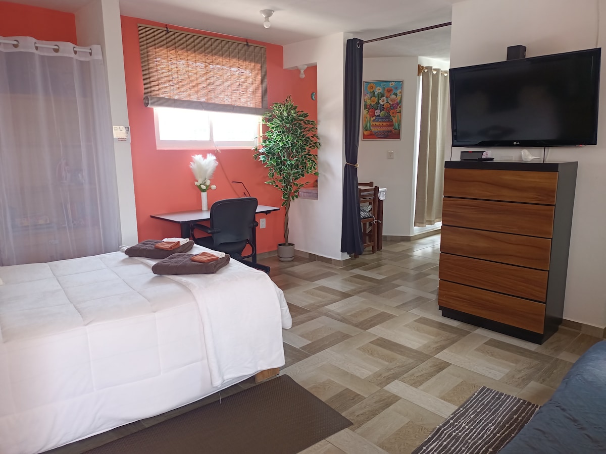 Acogedor, cálido y bien ubicado — tu espacio ideal para descansar. Disfruta de una estancia tranquila en este acogedor estudio cálido y funcional, pensado para ofrecerte comodidad en cada detalle. Ideal para quienes buscan un lugar privado, luminoso y bien equipado. Ubicado en una zona segura y de fácil acceso, estarás cerca de supermercados, tiendas y vías principales. ✔ WiFi ✔ Entrada autónoma ✔ Estacionamiento ✔ Cocina equipada ¡Todo lo que necesitas para sentirte como en casa!