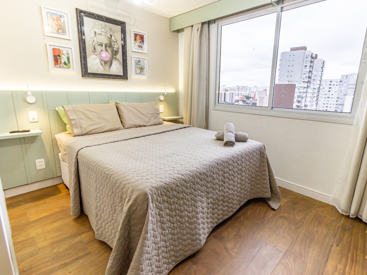 Loft nuevo/Aire acondicionado/200 m del metro Brás.