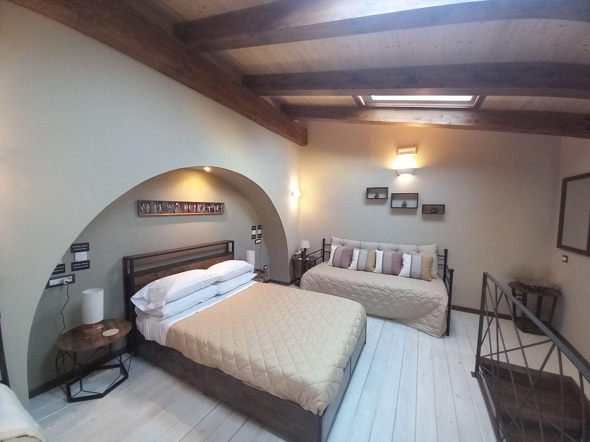 loft de espacio abierto muy grande en dos niveles a 200 metros del mar (San Giovanni Li cuti) garaje privado, aire acondicionado ventiladores de techo y piso,terraza con vistas al mar, internet de fibra, TV de 47pulgadas. 1 cama doble y puedes agregar 1 cama 1/1/2. Importante:aquellos que lleguen en avión pueden aprovechar el tren regional que llega desde el aeropuerto en la estación PICANELLO a 10 metros del apartamento y viceversa.
