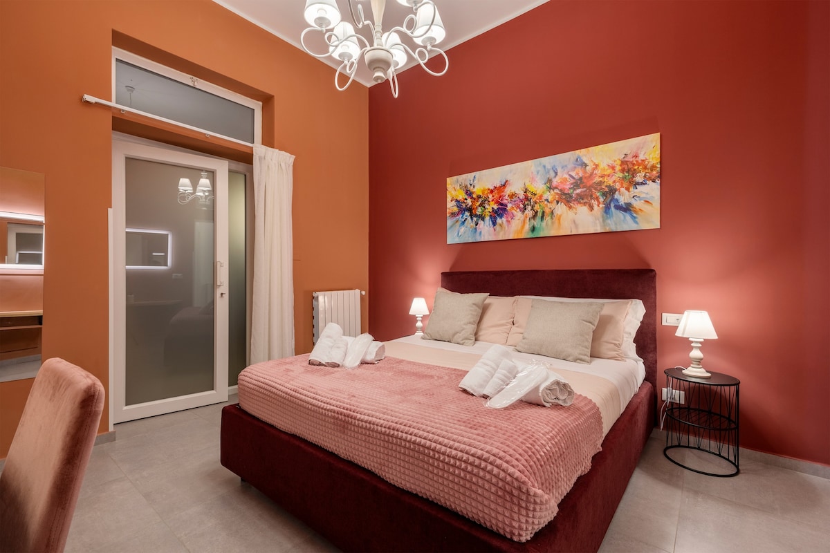 Las habitaciones Sole e Amore en Casteldaccia ofrecen 45 m² de espacio y pueden alojar hasta 4 personas. Disponen de 4 camas y 1 baño, lo que las hace ideales para vuestra estancia. El alojamiento incluye un dormitorio con cama doble y otro con dos camas individuales. El aire acondicionado está en el dormitorio principal, el Wi-Fi es apto incluso para videollamadas, la TV os garantiza entretenimiento y el balcón privado es perfecto para relajaros.