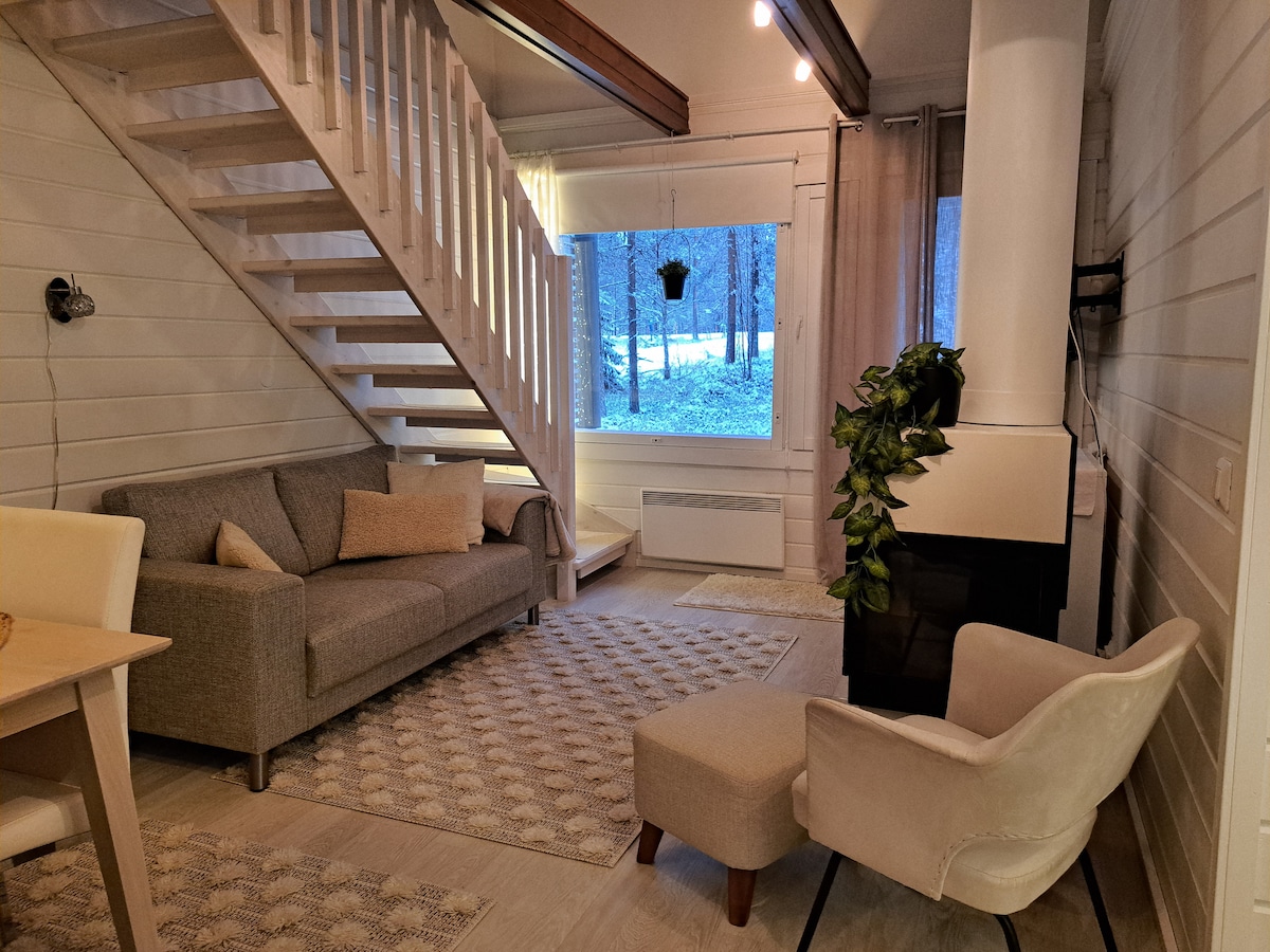 Welcome to Wildwood Escape, a lovingly handcrafted log cabin nestled in a picturesque pine forest – just 1.5 km from the vibrant Levi Center. Here, you'll find the perfect blend of tranquility and accessibility. Ideal for families and small groups, the small cabin offers direct access to scenic cross-country ski trails. A bus stop just 100 m away provides effortless transport in winter to the ski slopes, city center, and even the airport.