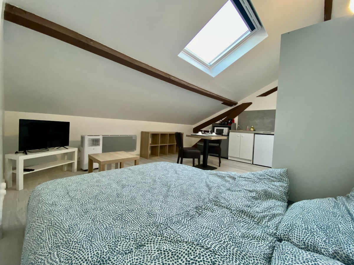 Apartamento de 40 m2, muy céntrico, muy cómodo , situado en el segundo piso de una residencia, cocina equipada, salón con vistas al muelle de Mosa. Habitación con cama queen size, baño con secador de toallas, inodoro. Se proporciona ropa de cama.Bien equipado (horno, microondas, lavavajillas, cafetera de cápsulas,.) Desayuno previsto. No fumen en el apartamento.Acceso a los animales por reglamento de copropiedad. Aparcamientos gratuitos en las cercanías. Estación de autobuses a 5 minutos en automóvil;Estación de tren de alta velocidad a 18 minutos.
