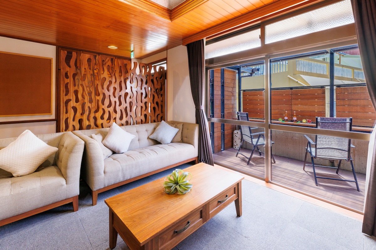【Esta ubicación, el tamaño de esta habitación, esta calidad, este precio.】 Ningún otro huésped. Habitaciones de 3 camas en la habitación Ryukyu Modern Suite. ¿Por qué no te relajas en la sala de estar con tu familia o grupo? ¡Hemos preparado artículos que agregarán color a tu viaje, como alfombras Ryukyu Tatami, CAMA NIHON para el hogar imperial! Expresamos el mundo del "Ryukyu Modern Inn Ryudan". *Utiliza estacionamientos que funcionen con monedas, de los cuales hay muchos cerca. 200 m de la estación Kencho-mae del tren 200 m de la calle Kokusai