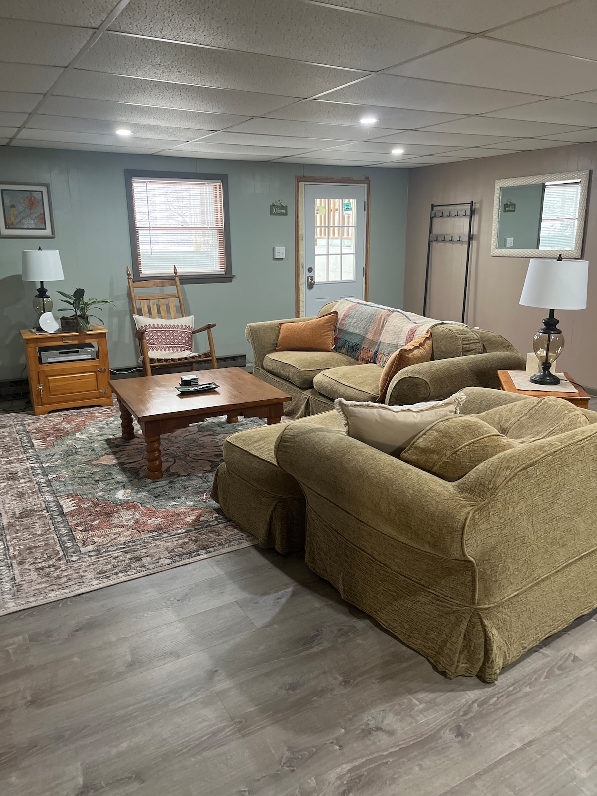 ¿Listo para un descanso del estrés de la vida? Ven y relájate en nuestra acogedora casa de campo. No hay televisión. Siéntate en el patio trasero o en el porche soleado y mira hacia el patio trasero y observa a los pájaros. ¡O sal a explorar! Hay una zona de picnic con un anillo de fuego (leña también). Puedes sentarte en el columpio y escuchar el arroyo que fluye a pocos metros de distancia. La sala de estar y el comedor abiertos en el interior te invitan a disfrutar del tiempo junto a familiares y amigos. ¡La sala de juegos en el sótano tiene libros y juegos para todas las edades!