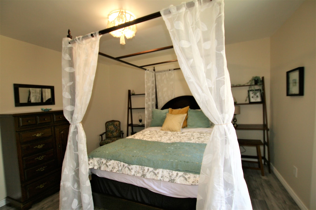 Welcome to ‘Birch Tree Abode’. A unique way to unwind after a day in lunenburg county.Situated between Lunenburg and Mahone bay. Minutes from either. This bunkie’ is situated amongst the trees, with comfortable deck to enjoy the beginning/end of your adventures around the South Shore. A beautiful open plan living space, high end bathroom, all rustically finished . 400sq ft-this is slightly larger than a ‘tiny home’, however minimal space 4 storage/luggage ,also note 5.10 ceiling in bedroom area