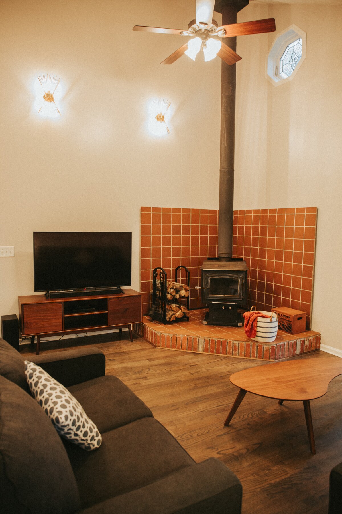 Disfruta de un café por la mañana con vistas a la montaña mientras te balanceas en un columpio de porche a lo largo de la envolvente cubierta. Es posible que veas ciervos, pájaros carpinteros u otros animales salvajes. Juega a los muchos juegos que tenemos. Después de un largo día de visitas turísticas o senderismo, relájate en el jacuzzi. Asa una buena cena para disfrutar en la mesa de picnic al aire libre y (si está en temporada) recoge arándanos o hierbas del jardín. Termina la noche asando s'mores alrededor de las fogatas al aire libre o poniéndote cómodo en el interior junto a la estufa rústica de leña.