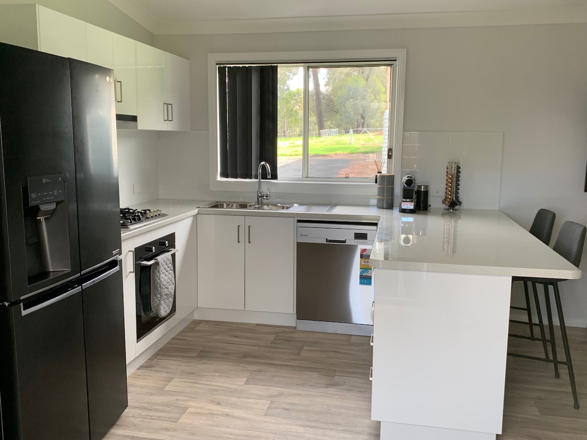 Te damos la bienvenida a Kangaroo Gully. Una nueva casa de dos dormitorios y dos baños enclavada en los eucaliptos en la hermosa Mudgee. Perfecto para un fin de semana romántico, un fin de semana con amigos o familias con niños. Disfruta relajándote, leyendo un libro o disfrutando de la hermosa vista en la terraza. ¡Incluso puedes tener la suerte de ver un canguro o algunas hermosas aves que llaman hogar a Kangaroo Gully!
