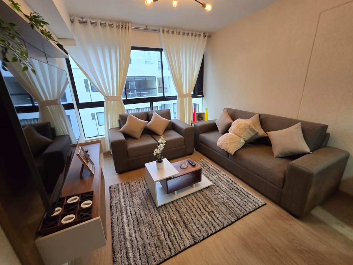 Luxury - Brand new Apartment , located in the heart of Miraflores district, the most touristic area in Lima. W/balcony, 2 large bedrooms, 2 bathrooms, a living area, 2 smart TVs, fully equiped kitchen, appliances, towels and linens. Also high speed 1000 MBPS Optical Fiber internet. Gym, 2 pools, club house and a pool and ping pong table. Shared spaces are common areas in 1st and 24th floor - • Para el uso de piscina y gym ingreso libre de acuerdo a disponibilidad.