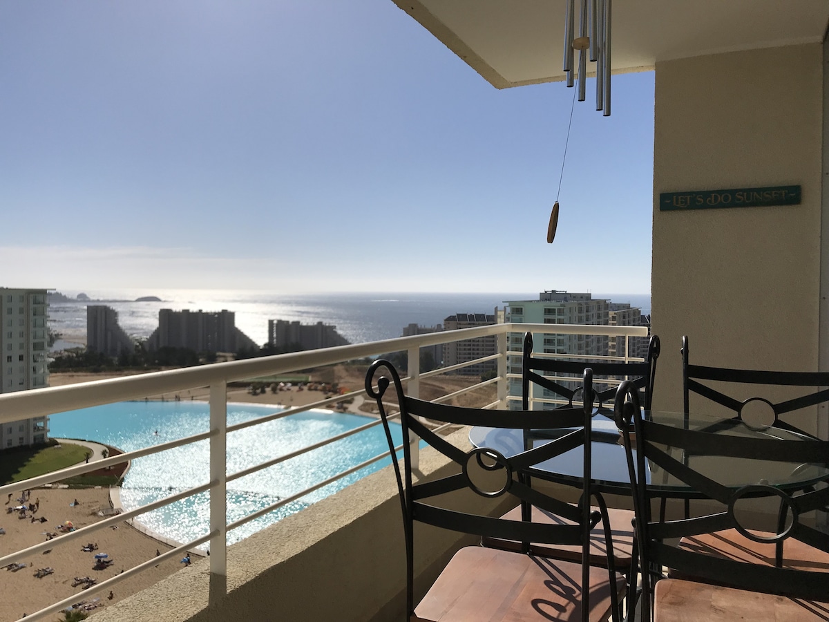 Departamento con vista panorámica. 3 habitaciones, 2 baños, 2 estacionamientos y cocina equipada. Incluye: • Wifi • 2 kayaks • 2 bodyboards • Parrilla Máximo 6 personas. El recinto tiene canchas, juegos, restaurantes y una de las piscinas más grandes del mundo para navegar y practicar deportes acuáticos. Piscinas para baño disponibles: • Fines de semana (31/10-08/12). • Todos los días (14/12-15/03). • Festivos todo el año. Piscinas temperadas y jacuzzi exclusivos para propietarios.
