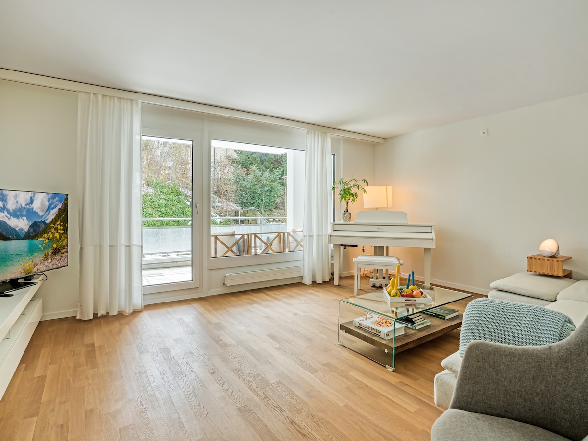 Helle, stilvolle Wohnung in St. Gallen. Modern eingerichtet mit gemütlichem Wohnbereich, Sofa und Flügel sowie Balkon mit Blick ins Grüne. - 1 Queensize-Doppelbett, 1 Bettsofa - Schnelles WLAN - TV mit Netflix und co. - 2 Minuten Gehweg zur nächsten Bushaltestelle - Höhenverstellbarer Esstisch – ganz nach eigenem Gusto - Kostenloser Parkplatz in Tiefgarage Die Wohnung ist Zentral gelegen und dennoch ruhig – ideal für Paare oder Geschäftsreisende.