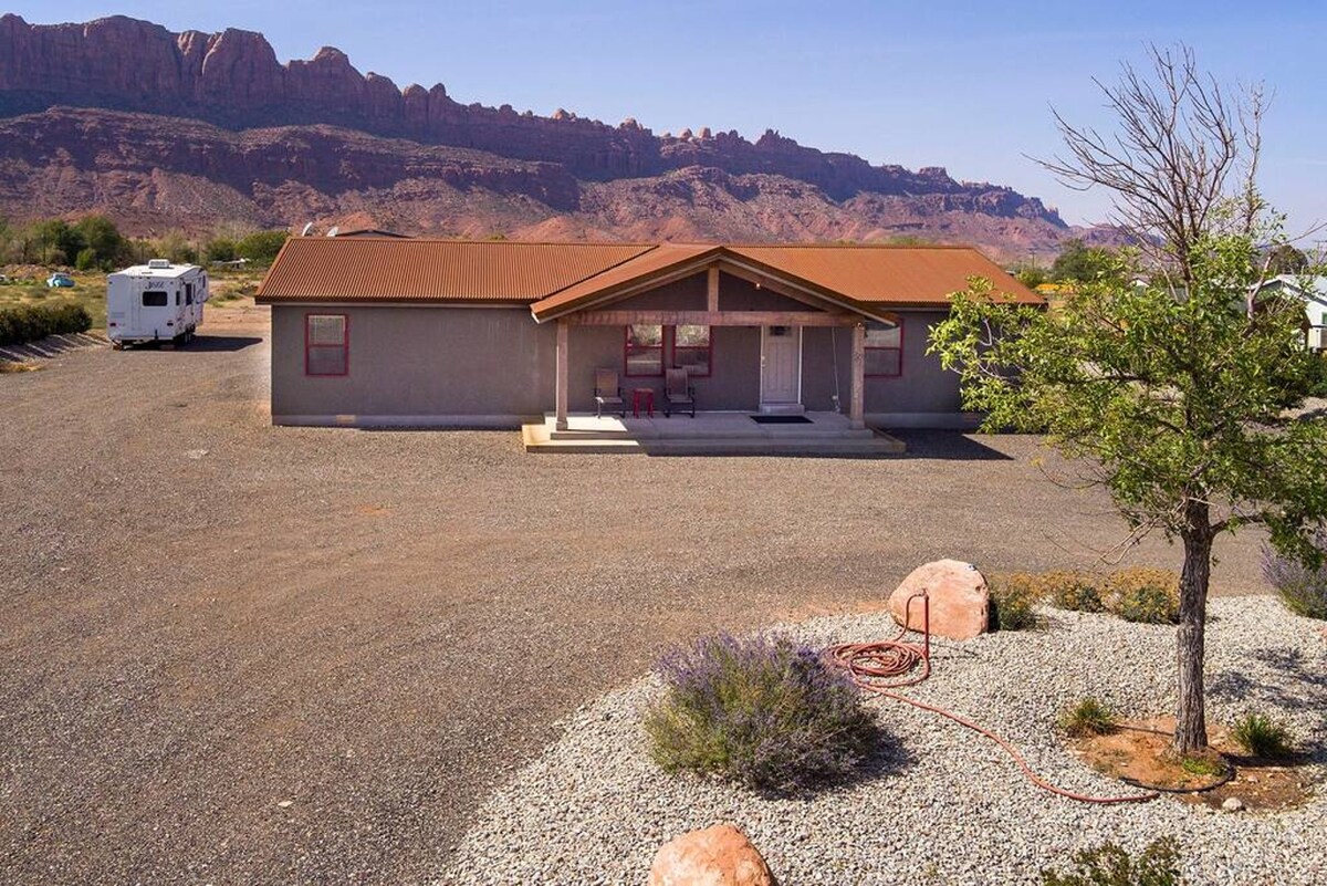 ¡Mucho aparcamiento para remolques! Muebles nuevos en casa de 3 dormitorios, 2,5 baños. Vistas pintorescas. La suite principal con cama tamaño king tiene baño privado. Dormitorio 2: cama tamaño king, patio privado. DORMITORIO 3: dos literas (4 camas individuales). Chimenea interior, asientos al aire libre, patio cubierto, patio trasero vallado, parrilla de gas, wifi, cocina, lavadora, garaje enorme, mesas de ping pong, MUCHO aparcamiento, piscina comunitaria con jacuzzi, televisores grandes. A 7 minutos del centro de la ciudad. A 15 minutos de los Arcos. A 40 minutos de Canyonlands. La piscina está a 60 segundos a pie. ¡Casa limpia y exclusiva para familias y grupos!