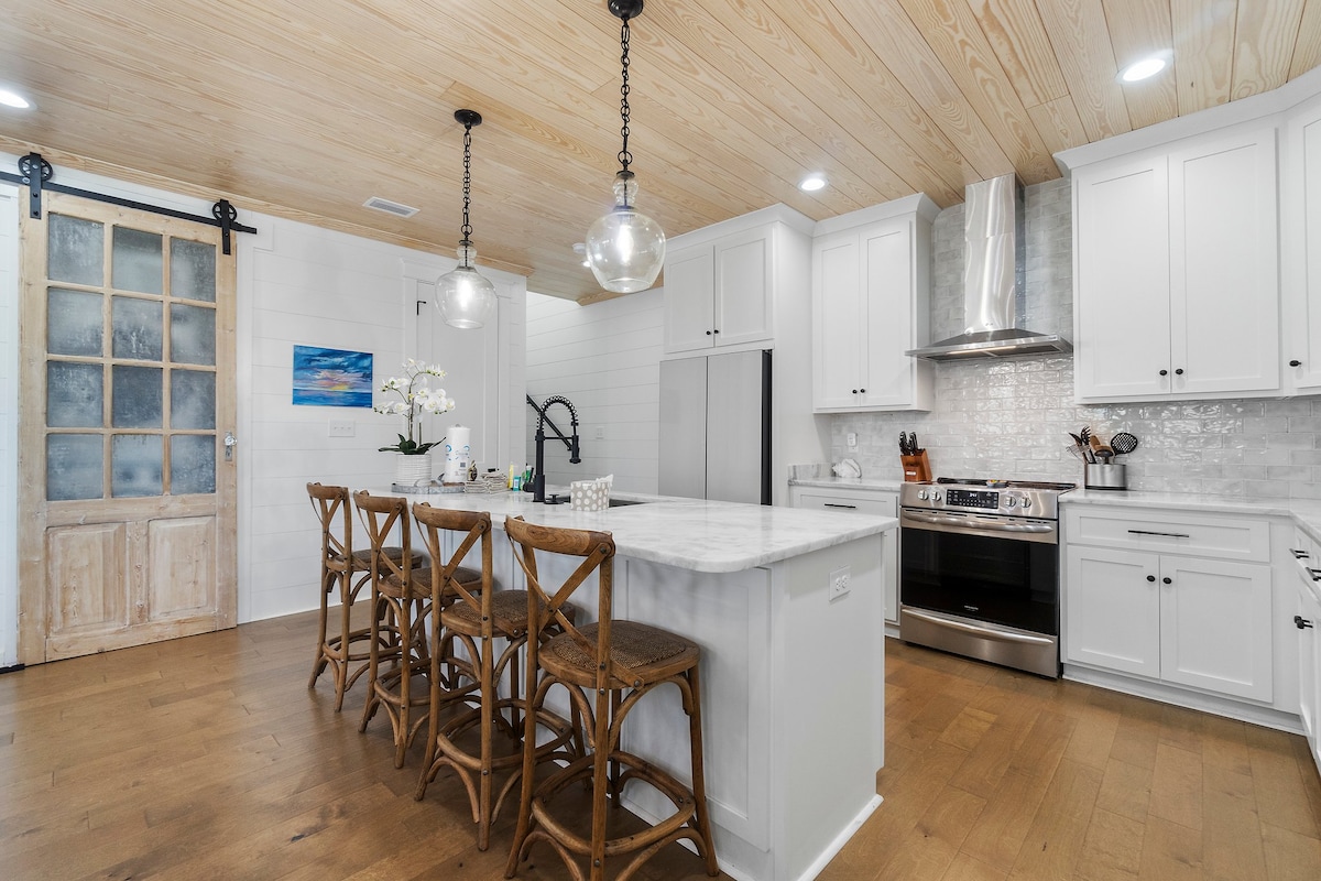 This 1950 3 bedroom 2 bath island house was remodeled with a Mid Century vibe. Some of the original features have been kept for authenticity. "The Getaway" feels like you are stepping back in time. It is a wonderful place to ride bikes and you can walk across the street to launch our 2 kayaks. I love our floor plan and the fact that each of the three bedrooms are large enough for a private retreat while the open kitchen/living area is so comfortable for the whole group to be together.