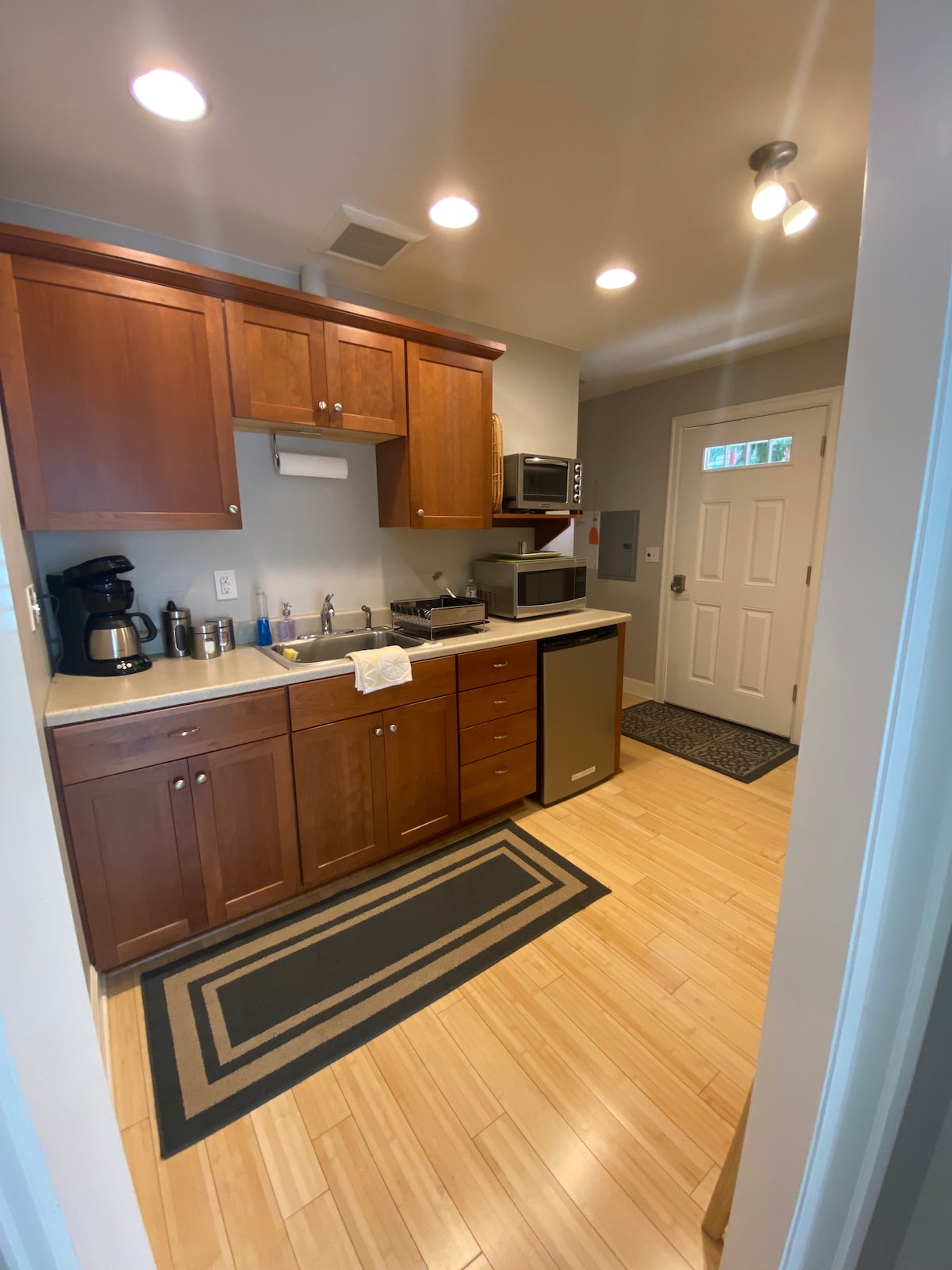 Disfruta de acceso privado a un dormitorio y sala de estar amueblados con buen gusto y que cuentan con: Un sofá cama muy cómodo; Un baño completamente nuevo con ducha y toallero eléctrico; Una lavadora y secadora de carga frontal; Platos, nevera, fregadero, cafetera, microondas, amplio espacio en el mostrador y una pequeña mesa de comedor; Red wifi privada. Hemos puesto mucho amor en hacer de este lugar un sitio bonito y cómodo. ¡Mira nuestras evaluaciones de cinco estrellas! Las llegadas después de lo habitual se pueden realizar fácilmente con una cerradura de puerta con código de acceso. Nos encantaría que hicieras de nuestro estudio tu hogar. Trae a la familia. Tu cómodo sofá cama tiene capacidad para dos personas más. ¿Quieres un refrigerio ligero entre restaurantes? Camina unas cuadras hasta nuestra tienda de comestibles local New Seasons. Utiliza la cocina americana con nevera, microondas, cafetera, fregadero, platos y encimeras de madera. Recarga tu ropa de viaje con la lavadora/secadora europea de carga frontal. Viaja ligero. Secador de pelo, tabla de planchar, toallas para la ducha... incluso hay paraguas a mano. Con entrada privada, aparcamiento en la calle y cerradura digital, el espacio es tuyo durante tu visita. Disfrutamos de nuestro patio trasero, especialmente en verano, y te invitamos a unirte a la diversión. Nos encanta compartir nuestros restaurantes, parques y caminatas favoritos si buscas sugerencias. Este codiciado distrito alberga docenas de restaurantes y pubs cerveceros a poca distancia a pie, mientras que hay una estación de bicicletas compartidas Bike Town a una manzana de distancia para moverse por la ciudad. La tienda de comestibles local New Seasons está a unas manzanas de distancia. Aparcamiento en la calle Estación de bicicletas compartidas Bike Town a una manzana de distancia. Alquiler de bicicletas Everybody's a 1/2 milla de distancia. Uber, Lyft y taxis siempre a pocos minutos. GetAround, Car2Go, Reach Now y Zip Car Paradas de autobús TriMet cerca. La arquitectura y el diseño modernos hacen que sea fácil despejar la mente y disfrutar de la experiencia de Portland. El diseño verde incluye un travesaño abierto entre el dormitorio y la sala de estar.