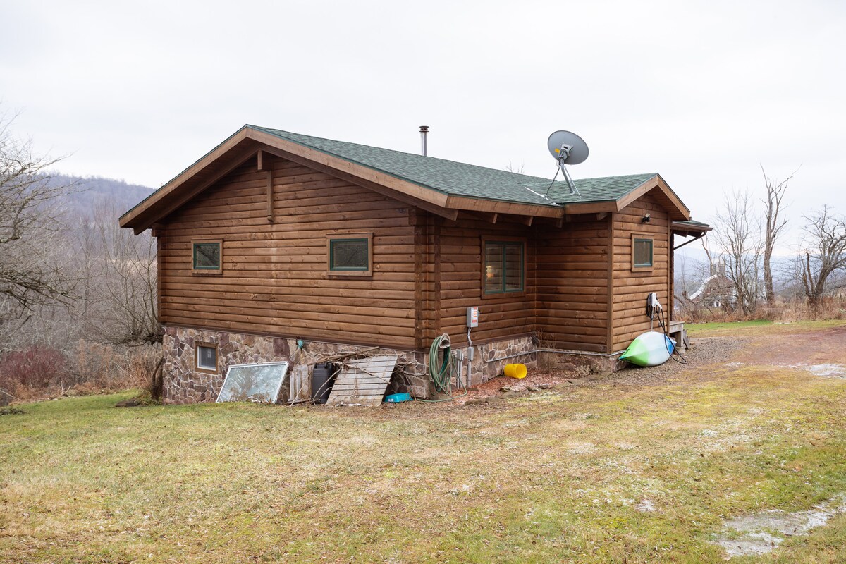 Whether you're looking to create new memories with friends and family, trying to decompress and relax outside of the city, or planning a romantic escape for that special someone in your life, this mountain view cabin is the perfect choice for your adventures in the Catskills region. Awaken before daybreak to watch the sunrise over the mountains & unwind by the pond with a delicious cup of coffee provided at the cabin. WINTER ADVISORY: Snow & ice may be present on the driveway & walkways. 4WD/AWD/All Season Tires recommended. Practice caution when walking & driving in the mountains. Relax - Play - Enjoy! The best of two worlds: a sophisticated 2 Bedroom 2 Bath Contemporary with all the creature comforts - all this on just under 8 acres in a picturesque back country setting with majestic mountain views, and even a small pond. Plenty of highlights in the saltbox-like residence. Brand new stranded bamboo floors in the cathedral ceiling great room and bedrooms. Antique Blanco Granite counters, Hickory Cabinets, ceramic tiles floor in the kitchen, natural stone travertine tile floor in the downstairs bath. The upstairs Master Bedroom has ensuite bath with subway wall tiles and Art deco floor tiled shower and a closet with laundry hook-ups, both behind sliding barn doors. All the mechanicals, appliances, fixtures are new (2018/2019) and above average including thoughtful details oriented to todays lifestyle (USB charging ports in electrical outlets in bedrooms!). All this just minutes from Ski Plattekill in Roxbury, the Round Barn Farmer's Market in Margaretville and within 3hrs. from GWB. All the amenities of home Wi-Fi Direct TV. House has all New finishes from pillows, bed sheets, mattress all the way down to perfectly rolled white towels, always find a relief of cleanliness with a little touch of OCD. Feel free to contact with questions and places to go things to do. Your basecamp for adventure awaits you in Hobart, New York. This centrally located contemporary chalet is surrounded by hiking trails and back country skiing. Just a short drive away from the retreat you'll find the small hamlet towns of Bovina, Bloomville, Delhi, Stamford and Hobart nestled in the Catskills. If you love wandering bookstores, enjoy exploring local art scenes, or have the desire to hug a baby goat, be sure to include these towns on your itenirary to embrace the full Catskills experience! 30 Mile Bike and walking trails ---https://www.traillink.com/trail/catskill-scenic-trail/ In the winter months its recommended to have and SUV since we are on our own private road. The road is cleaned of snow and anything above 2 Inches.