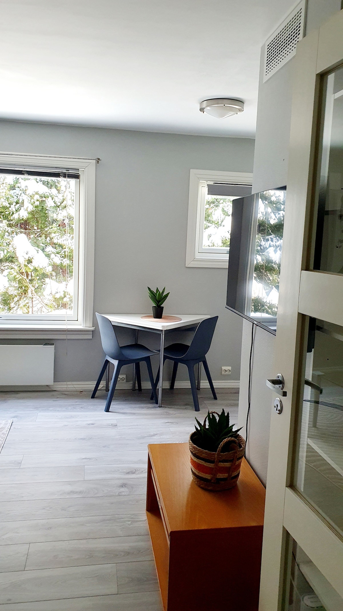 Este acogedor departamento de un dormitorio está ubicado en el centro de Molde, con fácil acceso a la universidad (a 30 minutos a pie) y a muy poca distancia a pie de Molde VGS (a 5 minutos a pie). El departamento tiene grandes ventanales y bonitas vistas del jardín y el fiordo. La calle principal con tiendas y tiendas también está a 7 minutos a pie y hay dos supermercados cerca. Si te gusta el senderismo, el camino más cercano está a solo 6 minutos a pie de la casa. Perfecto para estudiantes (máximo 2) o una pequeña familia.