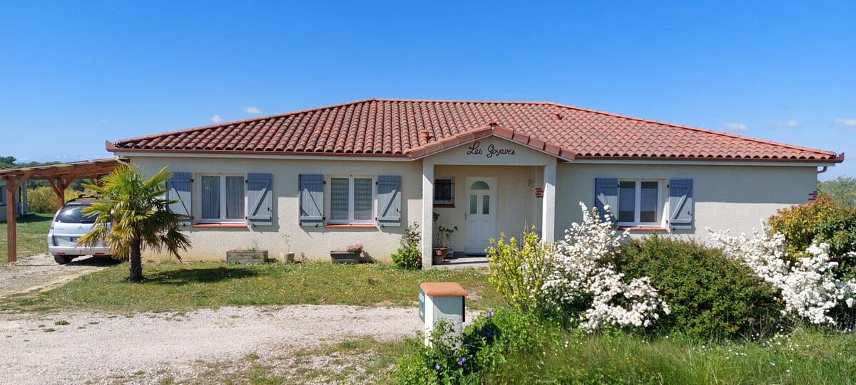 Studio aménagé et équipé au 1er étage d'un garage indépendant, lumineux et spacieux, offrant une jolie vue sur les Pyrénées. Le logement dispose d'un lit double + un petit canapé convertible pour 1 enfant Situé en campagne, dans un environnement calme et verdoyant avec de magnifiques paysages, idéal pour la tranquillité. À seulement 40 minutes de Toulouse. Proche centre ville et restaurants Micro onde et bouilloire à disposition, mais pas de cuisine.