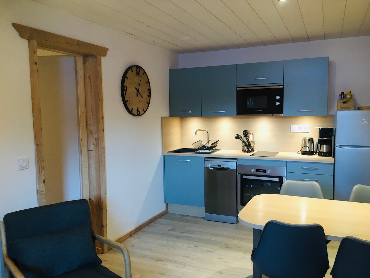 En la planta baja, apartamento de 55 m2, orientación sur, amueblado en un estilo a la vez moderno y de montaña. Vistas a las cumbres. Amplia sala de estar con sofá, TV de 127 cm. 2 dormitorios con camas de 160 cm, grandes armarios y roperos. Una habitación con TV. Terraza y jardín de 60 m2. Para su comodidad, además de los equipos básicos, encontrará hervidor de agua, tostadora, aparato de raclette/parrilla/crepera, aparato de sándwich/gofres...La limpieza al final de la estancia está incluida.