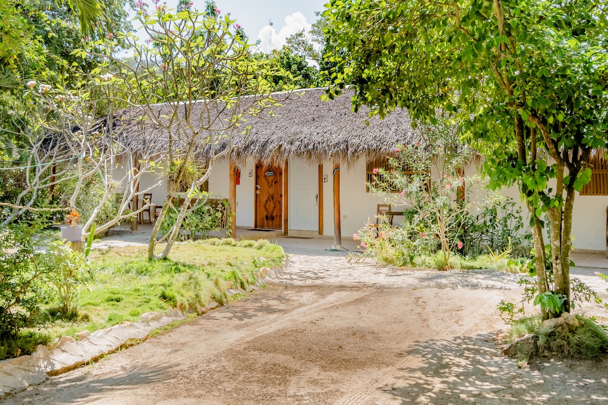 Bienvenido al mundo coralino de nuestro bungalow Gorgona. Ideal para una estancia romántica con acceso privado directo a la playa de Punta Rucia. Completamente remodelado y redecorado en 2024, descubrirá un ambiente cálido y confortable. TV conectada e internet gratis. Capacidad total de 2 personas con comodidad y privacidad. El techo tiene doble aislamiento y ayuda a mantener la frescura natural. Hay una barbacoa colectiva disponible. Hay guardia y estacionamiento disponibles.