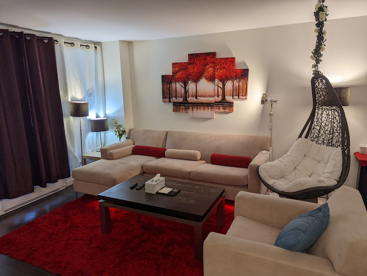 El estudio se encuentra a 20 minutos de Montreal. Se encuentra en una nueva zona tranquila a dos pasos de la Ruta Verde, un carril bici que atraviesa Canadá. Disfrutará del estudio por su gran comodidad, su aspecto moderno y la piscina exterior excavada a su disposición (no exclusiva, ya que se comparte con nosotros, los propietarios). Este alojamiento es perfecto para parejas, personas que viajan solas y viajeros de negocios. No apto para fiestas ni reuniones de amigos.