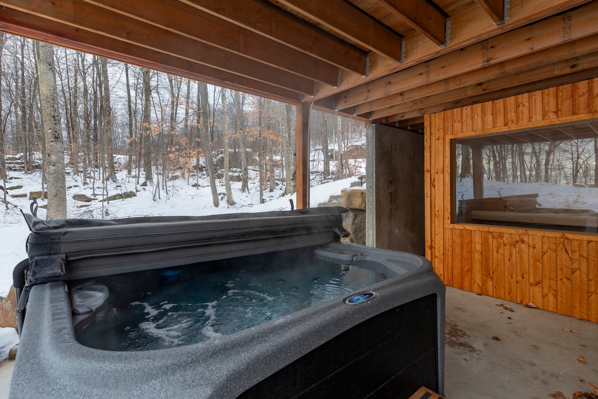 SKI-IN/SKI-OUT Descubra la comodidad de este chalet con spa al aire libre Ski-in/Ski-out, situado en las afueras de la montaña de esquí Morin-Heights con vistas panorámicas. Además del acceso directo a las pistas de esquí alpino, también tenga acceso a una multitud de deportes como raquetas de nieve, esquí de fondo, esquí de travesía, bicicleta de montaña, ciclismo en bicicleta y árbol en árbol directamente desde la cabaña. Todos estos senderos están cuidados y señalizados.