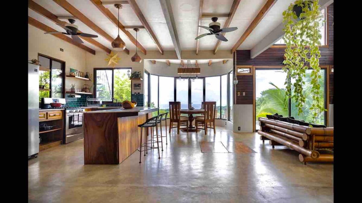 El alojamiento está inmerso en la naturaleza y rodeado de selva tropical. Se puede ver una impresionante vista al mar y al valle de la selva desde casi todas las habitaciones de la casa. No hay vecinos y, debido a su privacidad, sin duda verás mucha más vida silvestre que tu lugar promedio en la zona. Esta casa fue construida y diseñada con gran cuidado y mucho amor, y sentirás esa calidez. La casa está a 2,5 km en auto de la costa de Montezuma y sus playas.