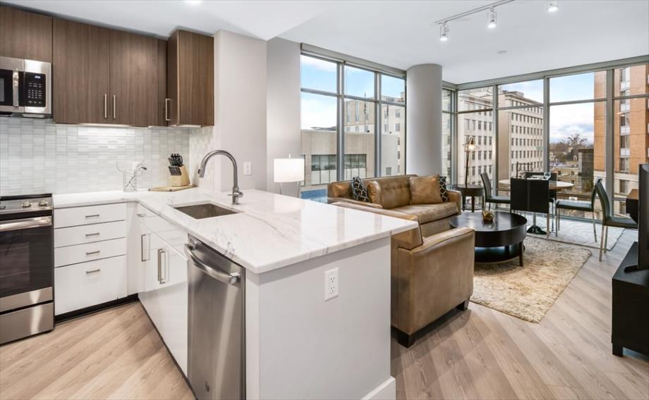 In the heart of Bethesda’s walkable Downtown neighborhood, this new high-rise offers luxurious amenities and a sunny, modern living space. It’s perfect for business or leisure stays. Highlights include: • Gorgeous chef’s kitchen with stainless steel appliances and stone countertops • Outdoor jetted pool and sun deck with BBQ grill stations, reminiscent of a luxury resort • Ideal location within walking distance of the Bethesda Metro Station (Red Line) and quick access to I-270 and the Beltway