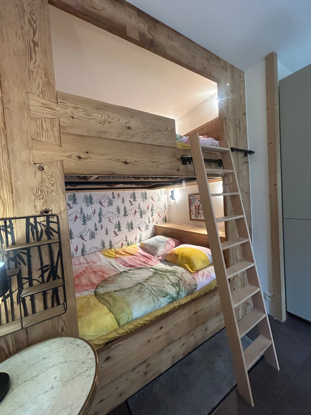 Estudio nuevo con 2 camas dobles en Vallorcine. Pueblo de montaña entre la frontera suiza y Chamonix Mont-Blanc. Residencia que incluye en el interior (en la misma planta que el estudio) de acceso libre: piscina a 42 pasos, sauna a 18 pasos y gimnasio a 10 pasos. Panadería y tienda de deportes accesibles sin salir de la residencia. Acceso a las pistas y/o al dominio de Chamonix (Balme) a 5 minutos a pie. Estación de tren a cinco minutos. Estacionamiento privado cubierto (no cerrado) en la vivienda.